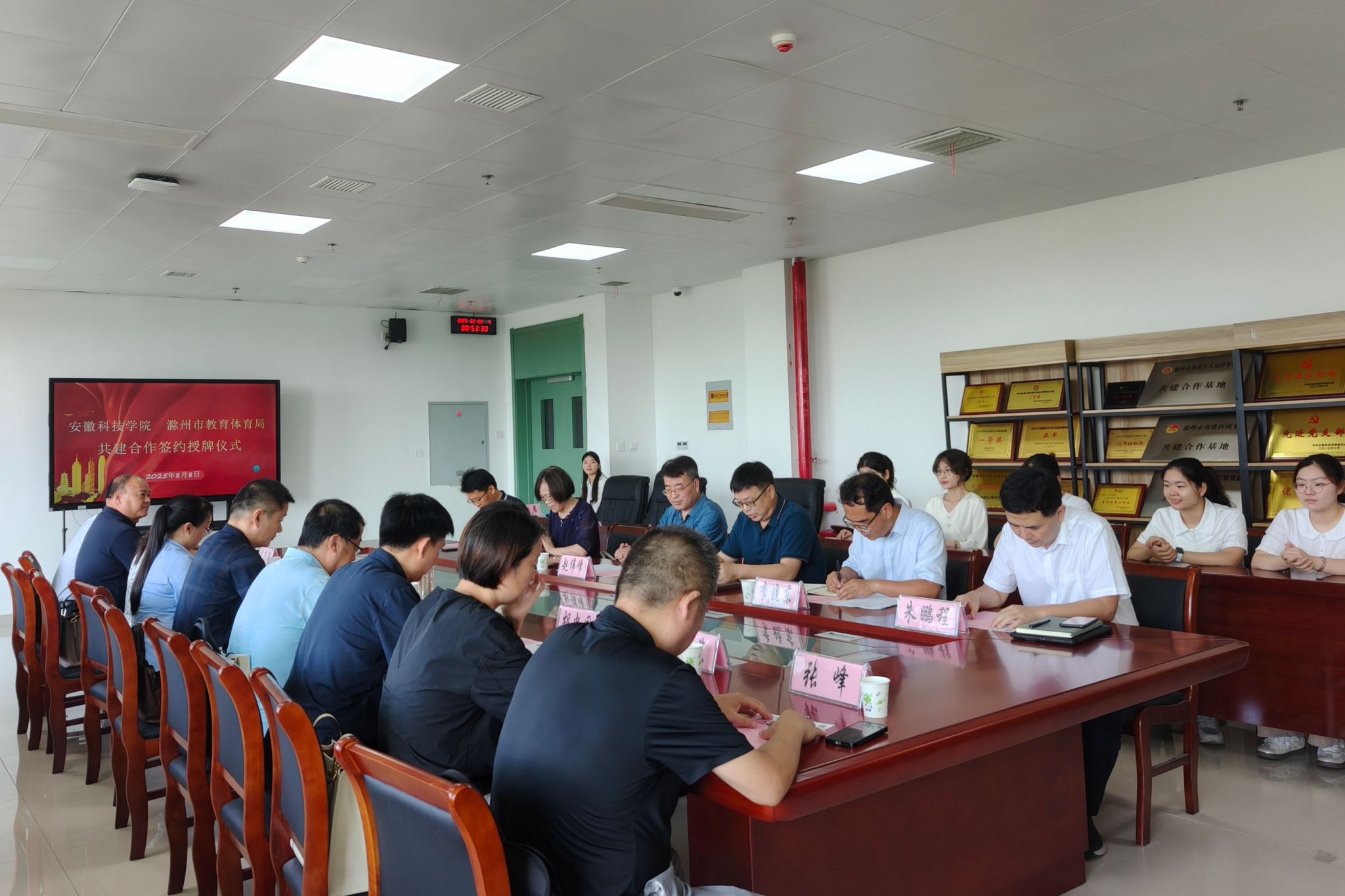 8月8日上午,校党委委员、副院长赵伟峰出席爱体育平台与滁州市教育体育局共建合作签约授牌仪式。滁州市委教体工委委员、市教体局副局长李志及教体局相关科室负责人,滁州市区六所中学负责人;教务处、人文学院、外国语学院有关人员出席仪式。仪式由教务处副处长(主持工作)舒英杰主持。