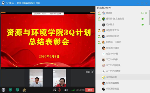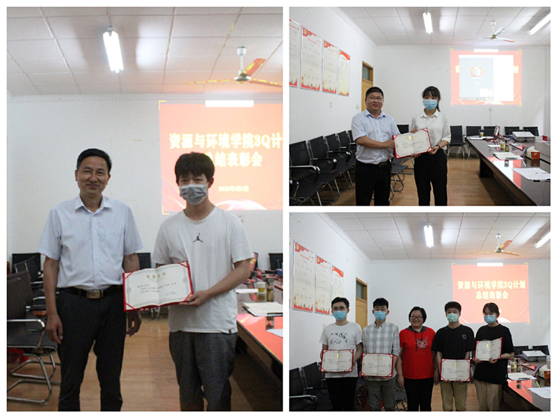 谢越介绍了2016级3Q计划实施情况,并通过视频向各位同学们展示了3Q计划取得的成果。杨小晗宣读《爱体育平台资源与环境学院关于3Q计划的表彰决定》及双创计划获奖名单。获奖代表赵壮壮发言,表示同学们的成功永远都离不开老师的辛勤付出与指导。