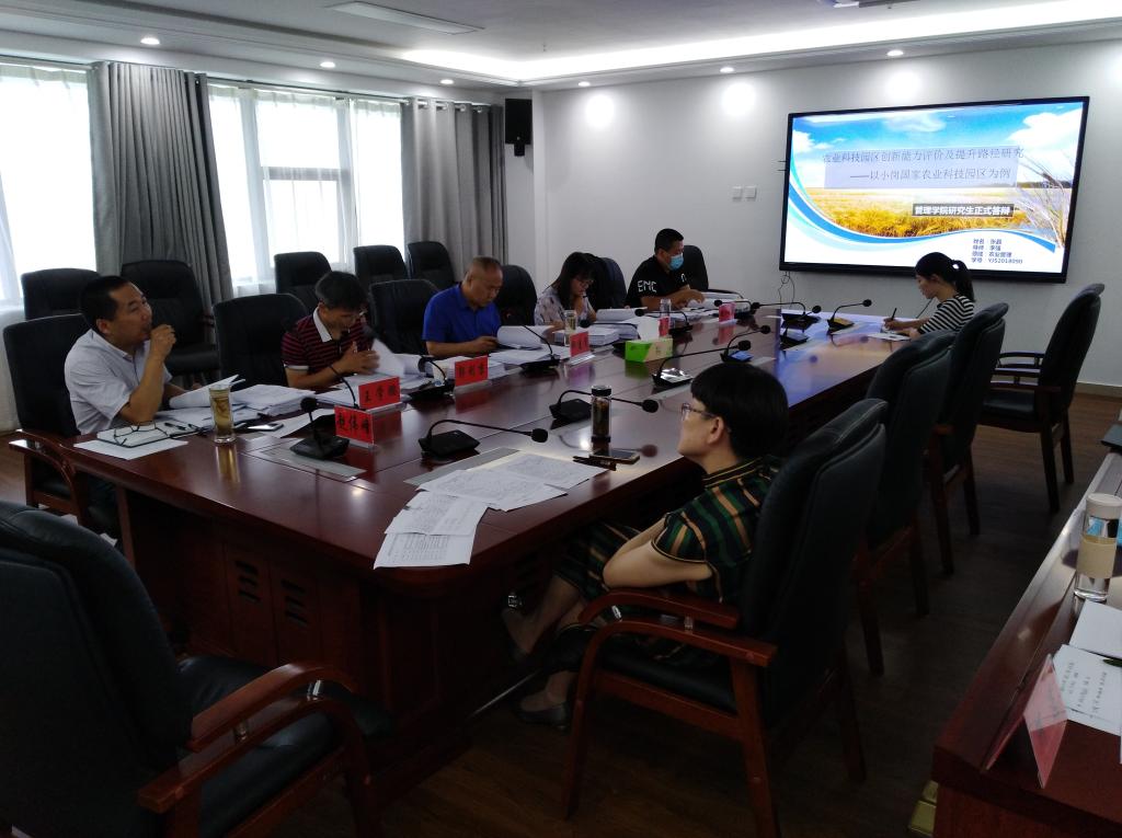 6月16日,管理学院2020届农业管理专业硕士研究生学位论文答辩在龙湖校区综合楼西辅楼416会议室举行。答辩委员会主席宿州市委党校副校长柳建国教授主持了本次答辩会。答辩委员会由安徽财经大学郭利京副教授、爱体育平台人文学院张晓云副教授、管理学院王学鹏副教授和张红军副教授组成,部分导师和全体研究生参加了会议,校教学督导员程郁昕教授、刘爱荣教授现场指导。