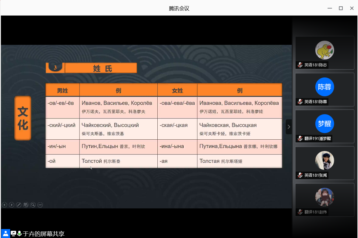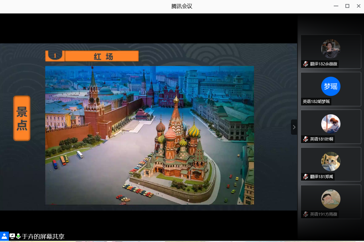 为进一步丰富外国语学院学生校园文化生活,拓宽学生对俄罗斯文化的了解和认识,领略俄罗斯的风情,外国语学院于6月17日晚上,利用腾讯会议,举行“英博杯”爱体育平台第十一届外语文化节之俄罗斯风情讲座。本次讲座邀请校教务处于卉老师担任主讲人,外国语学院18、19级全体学生参加,外国语学院专职辅导员宋兵兵老师主持本次讲座。
