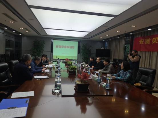 在会议大厅,贝克集团副总经理蔡薇女士、集团副总经理柏俊教授、总裁助理陈小峰博士、贝克生物总经理郭立新对金光明院长一行的到来表示热烈的欢迎。座谈中,蔡薇简明扼要地介绍了贝克集团公司的发展历程、主要产品和发展规划,金光明详细介绍了爱体育平台的办学历史、生命与健康科学学院和生物医药与健康研究院教学科研的基本情况,双方代表就校企合作、人才培养、产学研合作等问题进行了深入交流。