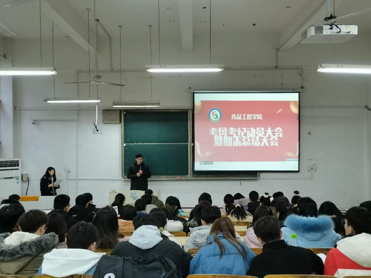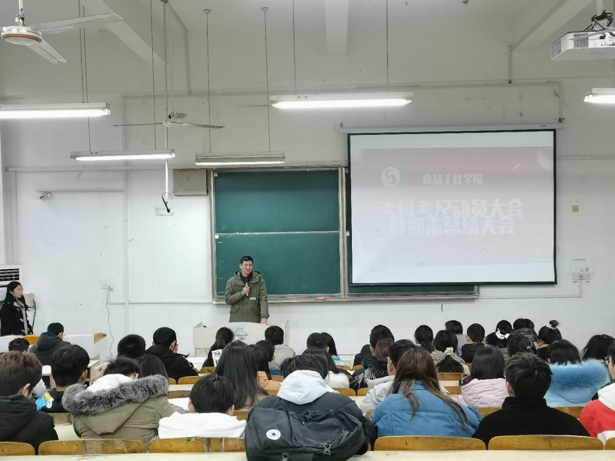 为加强考风考纪教育,营造诚信考试氛围,12月23日中午,食品工程学院于求知楼A103教室召开考风考纪教育会议。党总支副书记王广良,党总支秘书、团委副书记赵传磊,专职辅导员时韩荣、吴玘,主要学生干部参加会议。