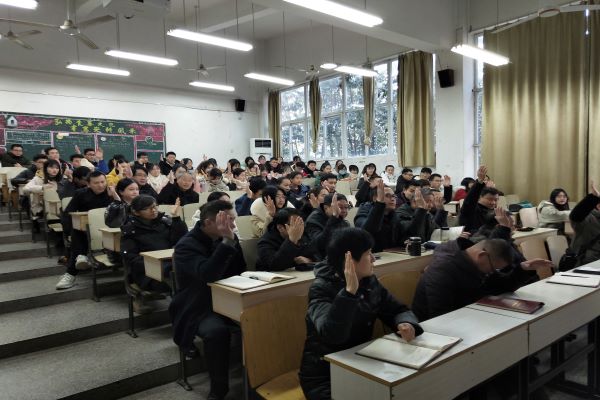 12月30日下午,生命与健康科学学院在求知楼A105教室召开全体党员大会,学院全体教职工党员、学生党员参加会议。会议由学院组织员张荣主持。