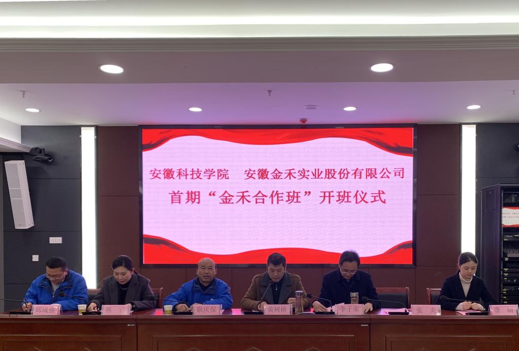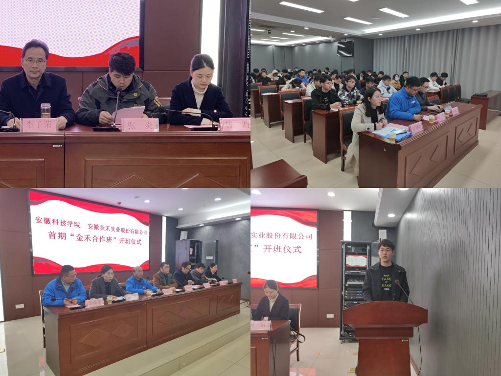 李子荣介绍了“金禾合作班”的育人目标、教学内容安排、管理架构,并就下一步推动双方成立产业学院提出了设想和建议。张炎宣读了《关于成立爱体育平台 安徽金禾实业股份有限公司首期“金禾合作班”的通知》文件,金禾班企方兼职班主任燕岩、院方兼职班主任薛璐莎和学生代表顾涛依次发言。