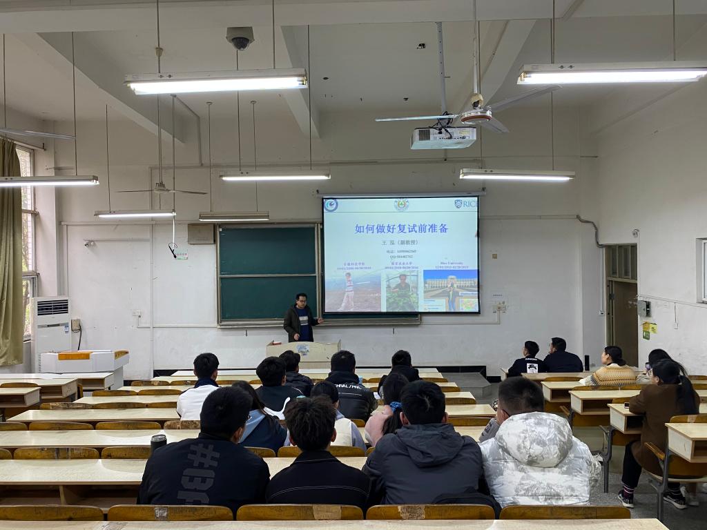讲座上,王泓主要围绕考研复试与调剂进行指导,他首先通过往年的经典案例和经验阐述了复试的重要性,他强调,对复试不能掉以轻心,要调整心态、精心准备。接着,他从简历准备、导师选择、邮件编写、专业课复习、复试流程等方面做出详细解说,并逐一列出可能的考察内容和注意事项。同时,他强调,要做好调剂准备,提前了解往届调剂信息,做好笔记,及时关注相关院校的调剂信息,尽可能掌握第一手资料,早做准备,做充分准备,确保顺利上岸。最后,考生就考研复试和调剂所面临的问题提出疑问,王泓逐一进行释疑解惑,鼓励他们认真准备,旗开得胜。
