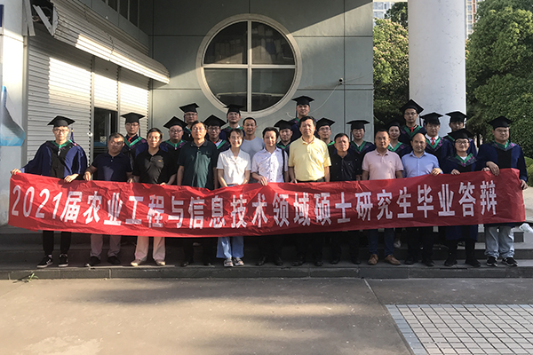 6月6日,2021届农业工程与信息技术领域硕士研究生毕业答辩会在机械工程学院笃行楼409会议室举行。答辩委员会由合肥工业大学韩江教授、农业农村部南京农业机械化研究所吴爱兵副研究员、合肥工业大学田晓青副教授、我校信息与网络工程学院院长余宏杰教授、电气与电子工程学院高海涛副教授组成,韩江教授担任本次答辩委员会主席,郭纯副教授担任本次答辩委员会秘书;研究生处处长张春雨教授、校督导员程郁昕教授莅临答辩会指导;17名2021届毕业生参加此次毕业答辩,参与答辩的硕士研究生导师列席答辩会,2020级部分研究生也旁听了本次答辩会。