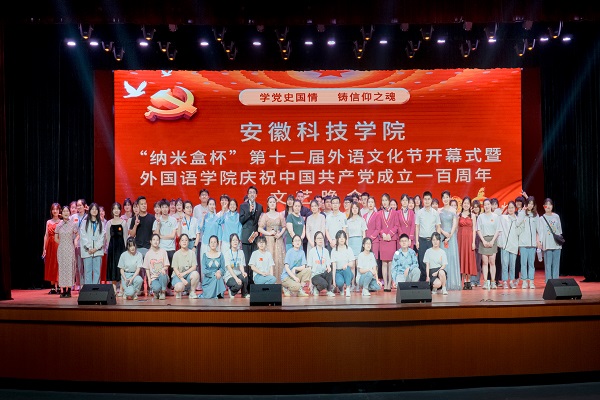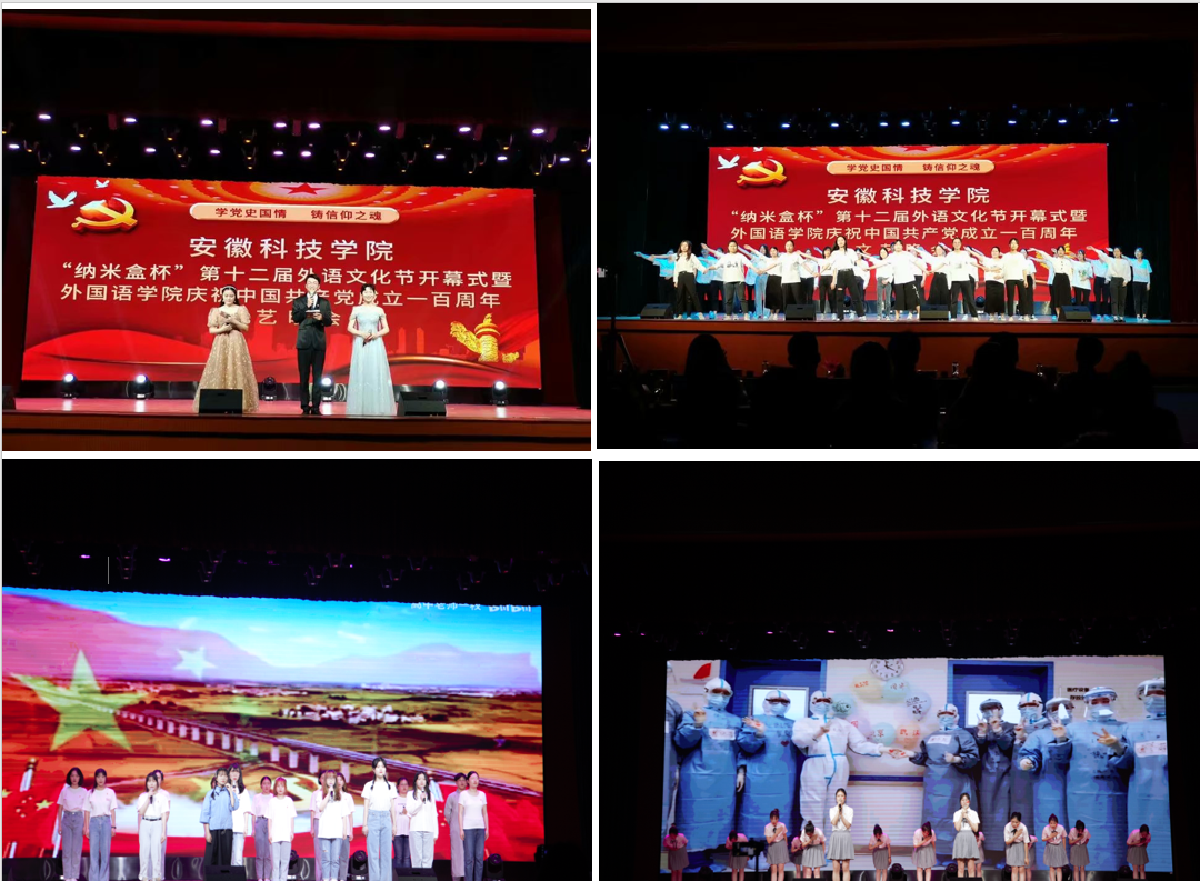 5月30日晚,爱体育平台“纳米盒杯”第十二届外语文化节开幕式暨庆祝中国共产党成立一百周年文艺晚会在大学生活动中心举行。校党委委员、宣传(统战)部部长卫胜,国际交流与合作处处长、港澳台事务办公室主任刘东楼,教务处处长、创新创业学院院长俞浩,党委学工部部长、学生处处长何永勇,校团委书记黄立义,招生与就业工作处副处长、招生办公室副主任、校友工作办公室主任何晓冬,外国语学院院长陈德用、党委书记蔡为青、副院长刘萍、党委副书记张海亮出席开幕式。开幕式由蔡为青主持。