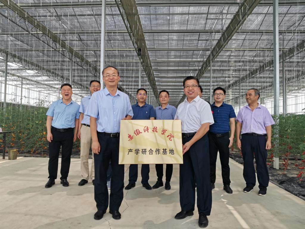 8月18日上午,何世潮一行在阜阳市颍东区二级巡视员王雷和颍东区委常委、副区长程传雷等的陪同先后考察了安徽瓦大现代农业科技有限公司、阜阳市立华畜禽有限公司和颍东区插花镇杨桥居委会,并进行了座谈。在座谈交流会上,瓦大集团总经理刘志才和立华公司总经理牛洪波分别介绍了各自的公司现状、企业文化、发展规划、人才需求和项目合作需求等方面情况,省财政厅下派干部、颍东区插花镇杨桥居党总支第一书记徐进超介绍了颍东区插花镇杨桥居委会基本情况、开展的工作、存在的问题和未来的展望。何世潮和崔广荣介绍了学校及学院师资队伍、人才培养和社会服务等情况,他们表示,学校始终坚持走政产学研融合之路,努力将科研成果转化到实际生产,为企业科研成果运用提供强有力的支撑。瓦大集团与爱体育平台合作的“产学研合作基地”和“校外实习实训基地”揭牌仪式在瓦大番茄谷隆重举行。崔广荣与颍东区插花镇党委副书记、镇长张勇座谈会后签订了政产学研合作协议。