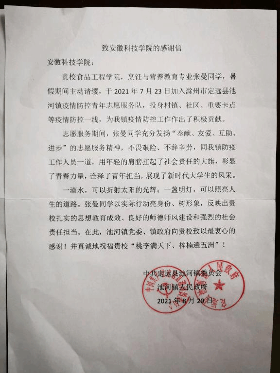烈日炎炎,一个乡镇的走访工作,无疑会给张曼、高传飞二人带来许多挑战与困难,正如张曼与高传飞所说,在走访调查过程中,居民们从一开始还不是很理解和配合,经他们大力宣传后,群众们都积极配合与支持工作,让志愿者们感受到自己的付出都是有意义的,同时在服务他人的同时,他们的沟通能力与工作能力也得到了大大提升。他们的优异表现得到了池河镇委、镇政府的肯定和赞扬。