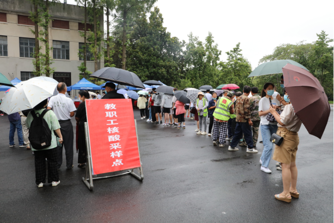 龙湖校区核酸检测采样工作于9月6日下午2点开始,志愿者和工作人员现场组织师生有序排队,保持一米间距,耐心等待样本采集,并规范其口罩佩戴。各部门群策群力、通力合作,组织师生分批次有序到场,3个小时的时间完成了龙湖校区8千人次的采样工作。