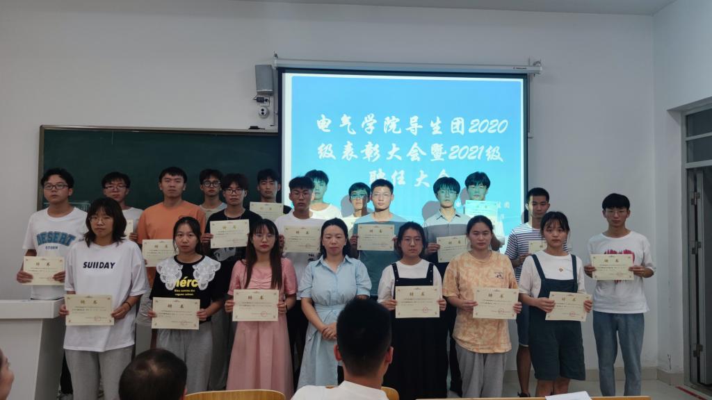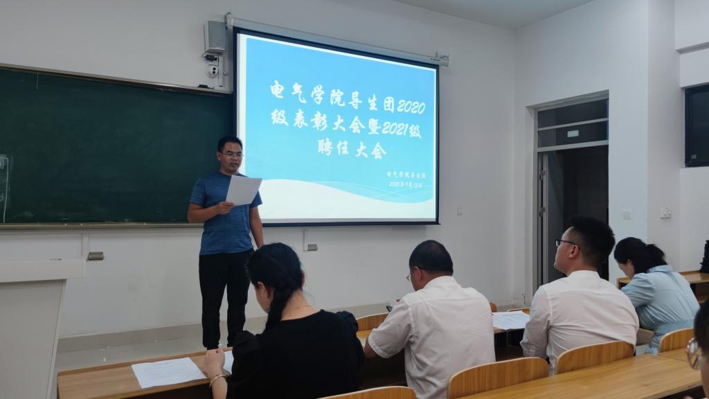 9月13日下午18:00,电气与电子工程学院导生团2020级表彰大会暨2021级聘任大会于致知楼B205召开。参加此次会议的人员有电气学院党委副书记、纪委书记尚磊,党政办公室主任王延丽,团委书记张成孜,辅导员陈更强、于宏亮以及全体导生团成员。大会由朱芳芳主持。
