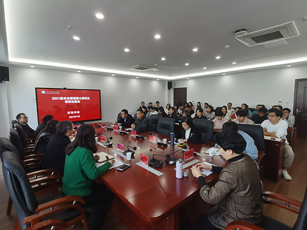 11月4日上午,管理学院在龙湖校区西辅楼317会议室举办2021级农业管理领域硕士研究生导师见面会。管理学院院长陈传万教授、财经学院院长郝世绵教授以及部分研究生导师代表和全体2021级农业管理领域研究生参加了会议。会议由管理学院副院长郑谦副教授主持。