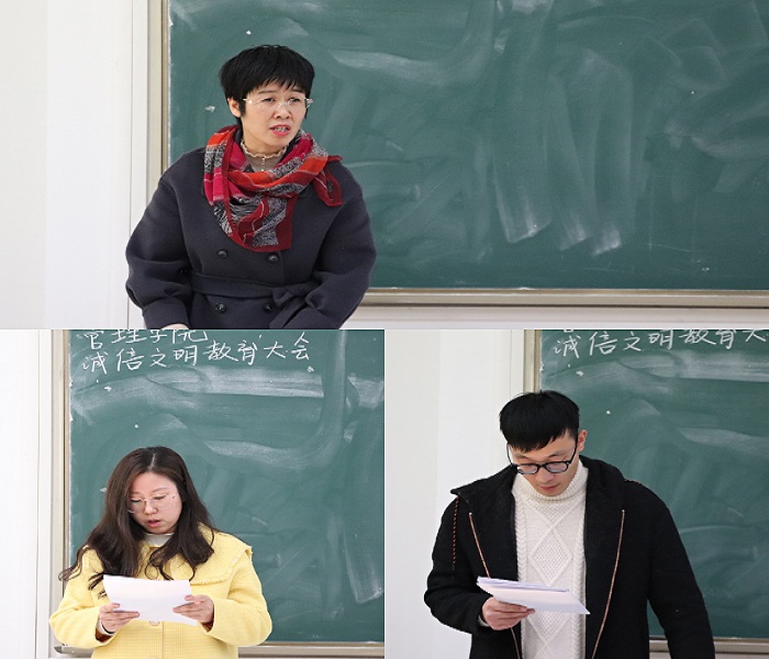 陶漫在动员讲话中指出了开展诚信文明主题教育和诚信考试的重要性,并强调它是学校系列主题教育活动的重要组成部分,列举出目前学生中存在的不诚信、不文明行为,告知大家诚信文明是做人的立身处事之本,是人类基本的价值规范,是大学生必备的核心品质。就如何开展诚信文明主题教育活动和诚信考试提出四点希望:一是希望各班级要高度重视、认真谋划,结合班级实际制定切实可行的实施计划;二是要广泛宣传,创新方式,注重实效,积极营造文明、健康、向上的学习氛围;三要保持阳光心态,树立正确的考试观,运用科学的方式方法,合理安排时间,认真复习迎考;四是希望学生干部要带头发挥示范引领作用,严肃考风考纪,诚信考试,拥有对规则制度的敬畏之心和做人做事的底线思维,自觉抵制考试中的各种不良风气,及时制止作弊,做诚信守信的模范,以考风促进学风,考出风格,考出水平,向自己、老师和家长交上一份理想的答卷。