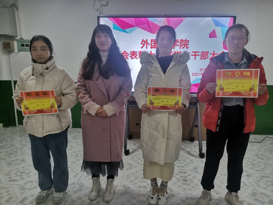 在干部大会上,陈慧中、宋兵兵、张薇薇分别布置了各自分管的工作,如:奖学金使用管理、安科E创项目申报、安全稳定、疫情防控、学风建设、意识形态、外语文化节闭幕式晚会、学籍异动等内容。在表彰会议上,与会老师们为获奖运动员颁发奖状并合影留念。宋兵兵宣读了《外国语学院学生在爱体育平台第30届运动会的通报表扬名单》,张薇薇宣读《外国语学院在校第30届运动会中获奖运动员名单》,院学生会执行主席桂纪昌对本次校运动会进行了总结发言。