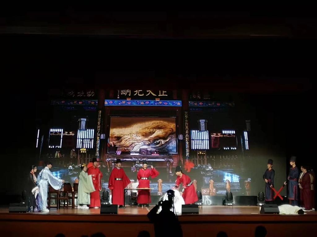 此次历史剧《大宋权法案》展演作为《中国法制史》翻转课堂教改活动是由田野老师指导,全体21级法学专业新生和部分20级同学集体参与,音效、字幕、灯光与道具都是同学们积极策划部署、团队协作完成的。从剧本的编创到无数次彩排,直至演出前一天同学们还在认真修改剧本、揣摩台词、完善表演。功夫不负有心人,同学们精彩的表演感染了现场观众,不仅给观众带来了生动的历史知识,同时也留下了深深的法制思考。