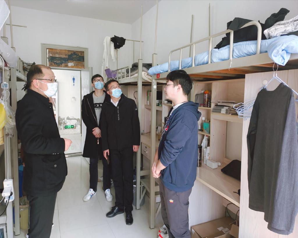 检查过程中,院领导老师与同学们进行了亲切交流,对同学们的身体状况、思想状况、学习情况和生活近况进行了细致了解。领导们在检查过程中,不断叮嘱同学们:一是疫情防控不可松懈,坚持每天测量体温,异常情况要第一时间报告;二是宿舍要多通风、勤洒扫,良好的宿舍环境是健康的提前;三是希望同学们能够严格遵守学校管控规定,合理安排好个人学习与生活。