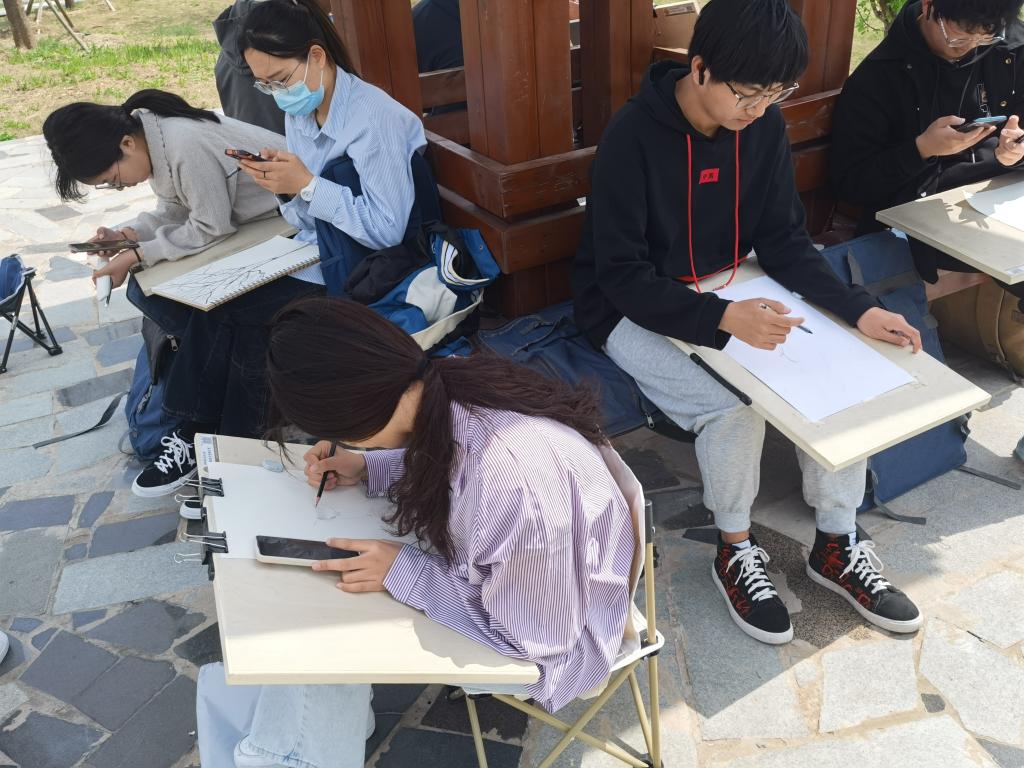 绘画是一门艺术,更是一种心灵深处的交流。清明假期,学院组织了以“天青色等烟雨 而我在画你”为主题的绘校园活动,这不仅体现了专业特色,也有效推进“美育”工作。活动前,武辉老师就如何选景、画景等方面进行了指导,随后同学们对校园环境进行描绘,经过三个小时的绘作,同学们交上了心中满意的画卷。