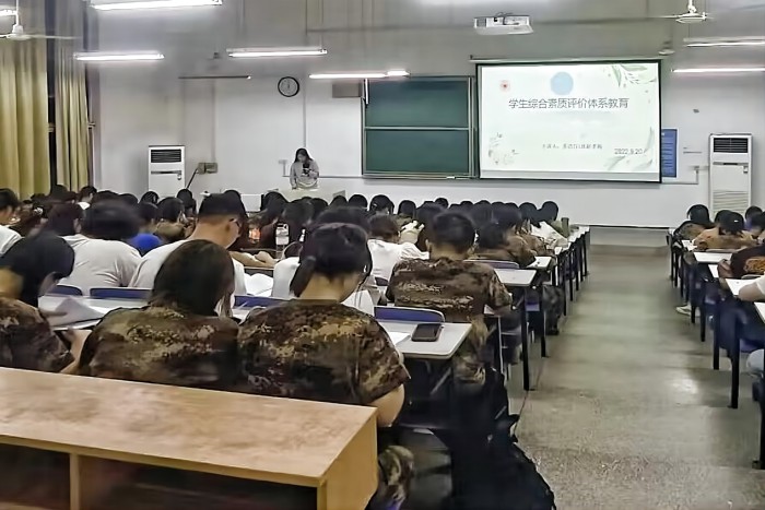 为全面贯彻党的教育方针,落实立德树人根本任务,培养德智体美劳全面发展的社会主义建设者和接班人,9月22日晚,外国语学院在求知楼A106教室举行学生综合素质评价体系介绍会。会议由学院专职辅导员张薇薇主持,由新生辅导员助理、英语211班班长赵孝梅主讲,2022级全体新生参加。