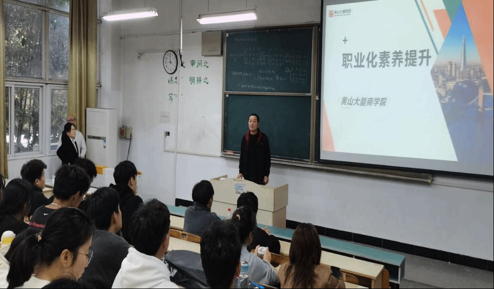 陈海泉曾就职于肯德基、巴黎甜甜等连锁餐饮训练部,现任黄山大厦商学院训练督导。报告从职业化的内涵和意义、对工作的正确理解以及职业化成长步骤等方面展开,并提出了职业发展的三个核心:专业表现、契约精神和成熟心智,强调职业素养的重要性。会上,气氛热烈,同学们踊跃回答问题,积极提问,且就职业发展问题展开了激烈的讨论,在轻松愉悦的气氛中畅谈职业理想。同学们纷纷表示:“陈老师讲的太好了,很有逻辑性!”“听完以后大受启发,我们一定要好好提升自身的职业素养。”
