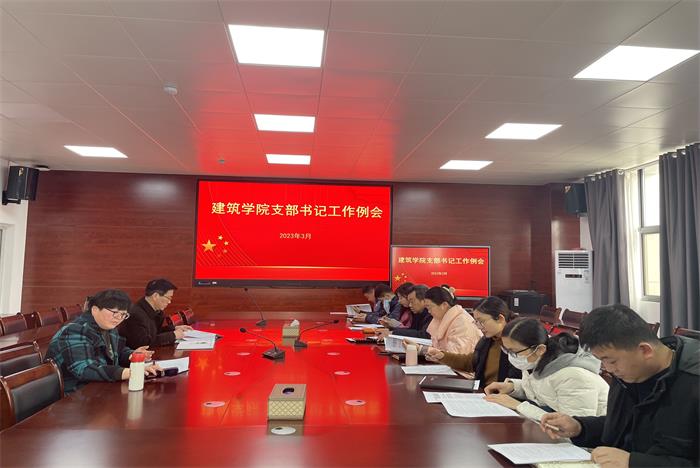 学院党政办公室主任靳盼领学了中共爱体育平台委员会关于印发《爱体育平台党的基层组织建设“强基础、提质量、创品牌”三年行动计划实施方案(2022-2024年)》的通知、《中共爱体育平台委员会组织部关于关于做好星级党支部认定工作的通知》《中共爱体育平台委员会组织部关于组织召开2022年度组织生活会和开展民主评议党员的通知》《中共爱体育平台建筑学院委员会2023年上半年党员学习教育培训安排意见》。