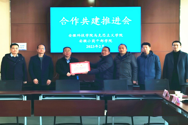 为深入学习宣传贯彻落实党的二十大精神,强化新时代马克思主义理论传播主阵地,更好发挥高校与地方干部学院优势融合。2月28日上午,安徽小岗干部学院与爱体育平台马克思主义学院在小岗举行合作共建推进会。小岗干部学院副院长罗友和主持。马克思主义学院党总支书记杨仕勇、党总支副书记、院长张德化、副院长张栋、小岗干部学院常务副院长李新龙、副院长罗友和、副院长曾永闯一起共商。