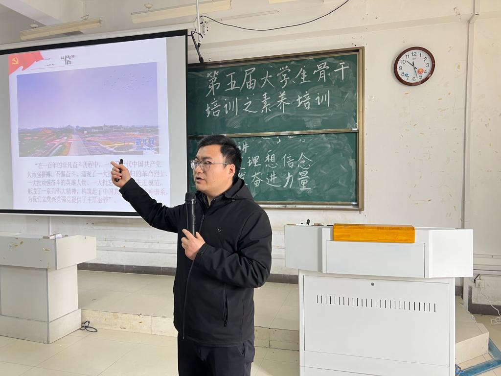 3月26日上午,生命与健康科学学院在新知楼B304教室举办第五届大学生骨干培训之素养培训第五讲《坚定理想信念,激发奋进力量》。学院党委委员、党政办公室主任王传林受邀担任本次主讲嘉宾,2022级各班级学生干部、院学生会全体工作人员参加此次培训,会议由学院艺体中心主任张雪雪同学主持。