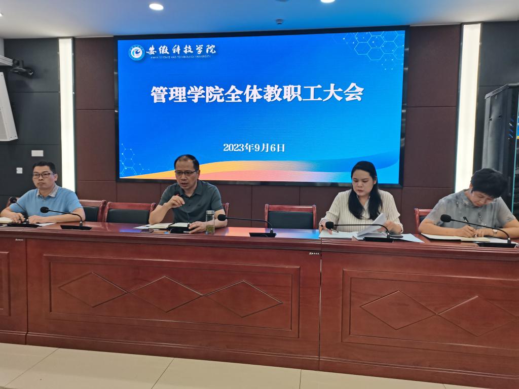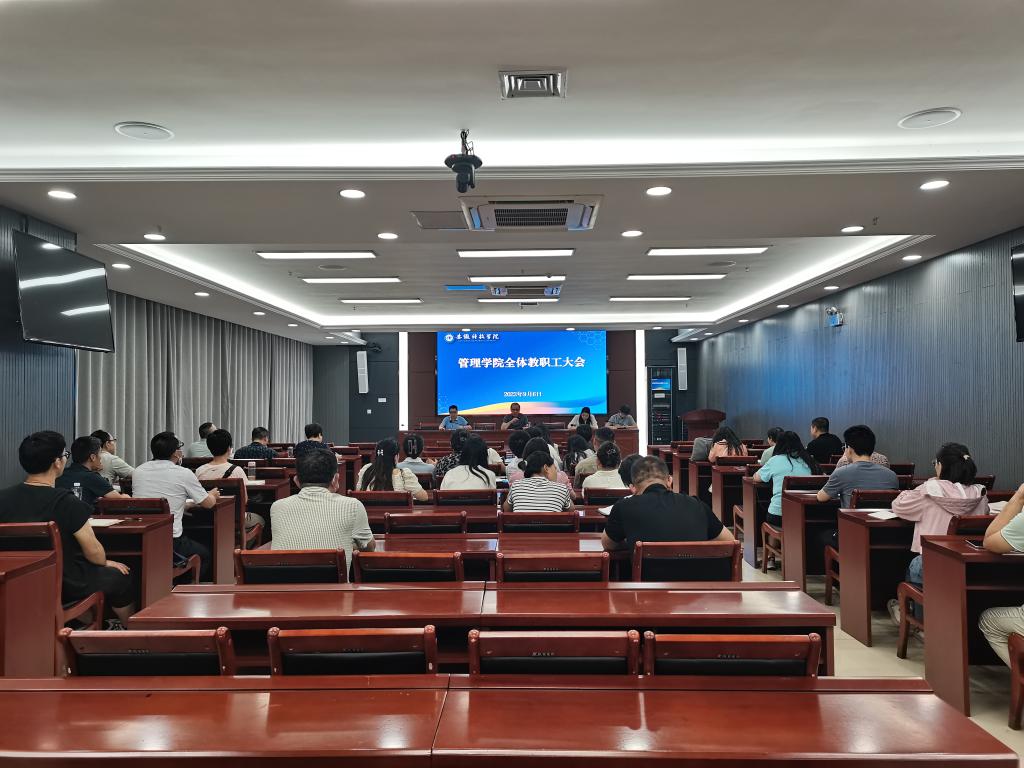 9月6日下午,管理学院在西附楼111会议室召开全体教职工大会,通报暑期重点工作进展情况,部署安排新学期重点工作。学院党政领导及全体教职工参加会议,会议由学院党委书记丁景良主持。