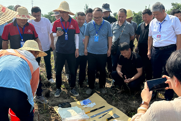 资源与环境学院师生、当地农业农村局及各乡镇工作人员组成专业抽样小组,在各地市开展土壤表层样品采集工作。工作人员按照流程,分工协作,井然有序,利用专业设备进行确定点位、挖土取样、切块称重、填写标签、上传数据等各项工作。