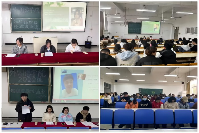 为帮助2022级学生掌握大学英语的学习方法和技巧,积极备战大学生英语四级考试,3月26日下午,外国语学院在求知楼A106和203教室分专业召开大学生英语四级考试经验交流会,学院专职辅导员张薇薇和全体2022级学生共同参加,交流会由学院主持队任星月、杨雨甜主持。