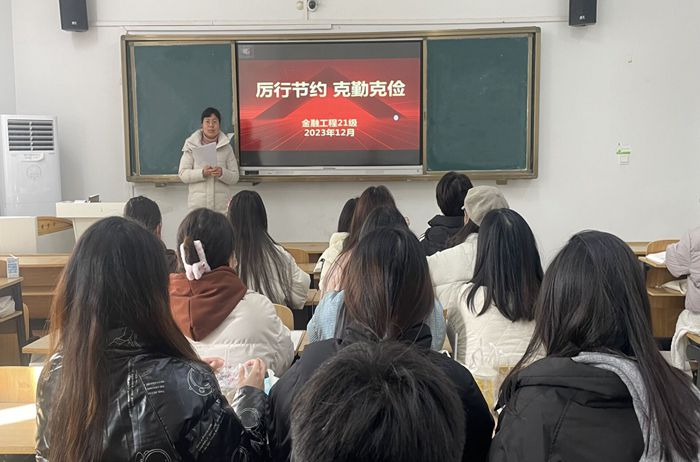 按照学院工作部署,12月下旬,学院在各班级陆续召开“厉行节约 克勤克俭”主题班会,引导学生牢固树立节约观念,弘扬中华民族勤俭节约的传统美德。主题班会的召开,增强了同学们厉行节约、反对浪费的主人翁意识。与会学生纷纷表示,作为新时代的青年大学生,要树牢绿色生活理念,提升环保责任意识,要积极行动起来,从我做起、从现在做起、从身边点滴小事做起,努力做勤俭节约新风尚的传播者、实践者和示范者。