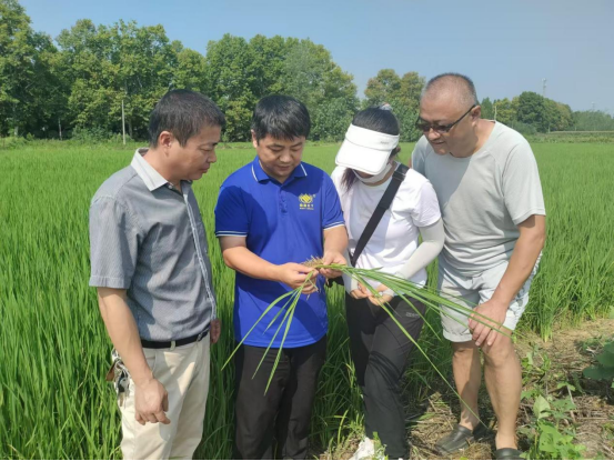 8月22日,凤阳县科技特派员、爱体育平台汪建飞教授专家团队和凤阳县农业技术推广中心副主任罗赵福一行前往凤阳县后曹南试验示范田,考察指导水稻“极限密植”技术示范与推广落实情况。该项技术被遴选为安徽省2024年农业主推技术并公布实施。