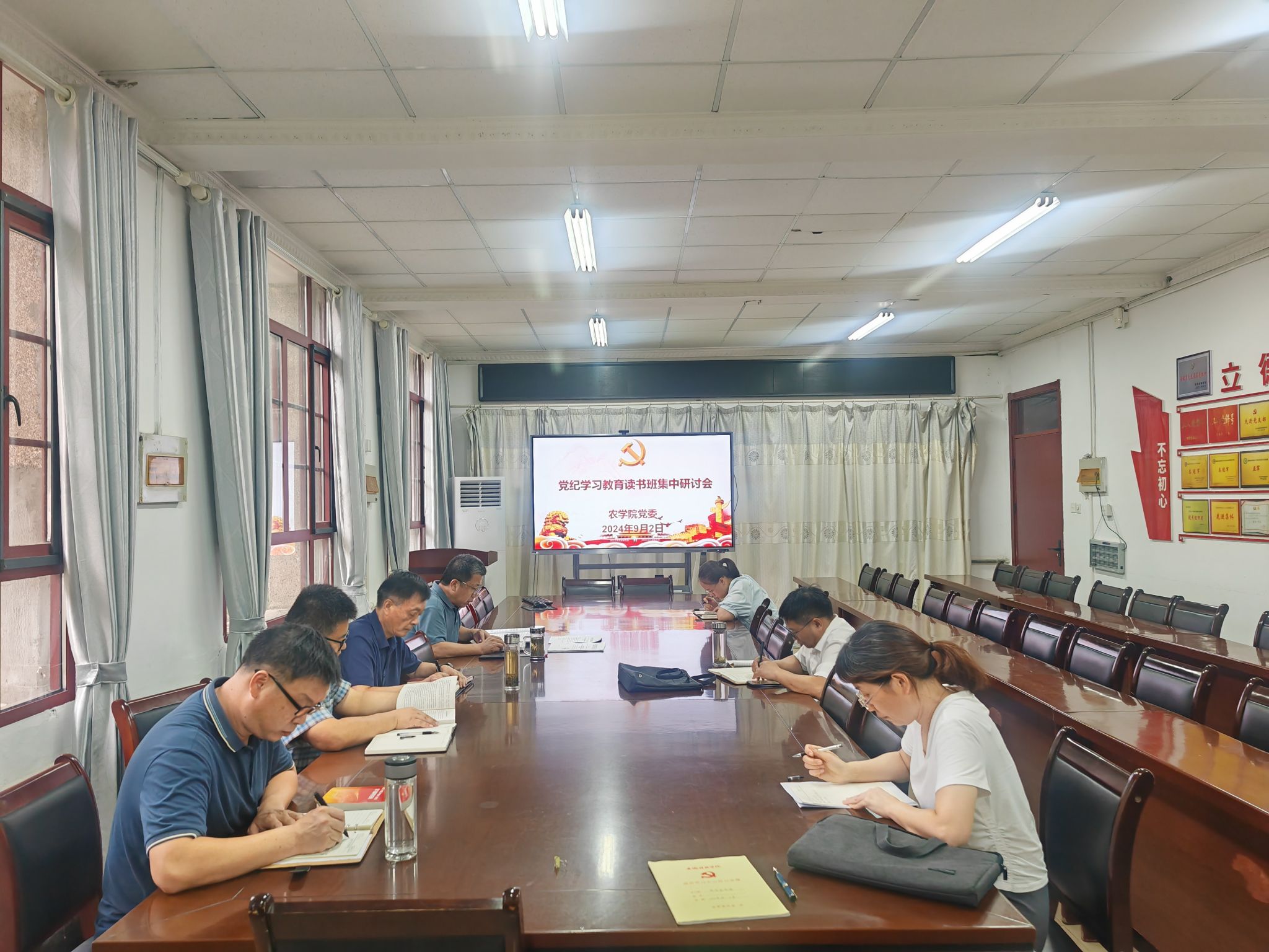 9月2日下午,农学院召开党纪学习教育读书班集中研讨会,进一步深入学习贯彻《中国共产党纪律处分条例》,就学院发展、学科建设、教师队伍建设、重点工作推进等进行专题研讨。学院党委理论学习中心组成员党委副书记、院长崔广荣,党委委员、副院长舒英杰,党委委员、副院长李文阳,党委委员黄先忠和何克勤,党政办、工会及团委负责人等参加会议。会议由党委书记何世潮主持。