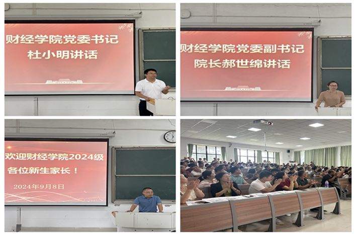 为强化家校联系,凝聚育人共识。9月8日下午,财经学院在致知楼C111召开2024级新生家长见面会。学院党委书记杜小明,院长郝世绵出席会议。新生辅导员及200余名新生家长参加见面会。学院党委副书记、纪委书记耿广汉主持会议。