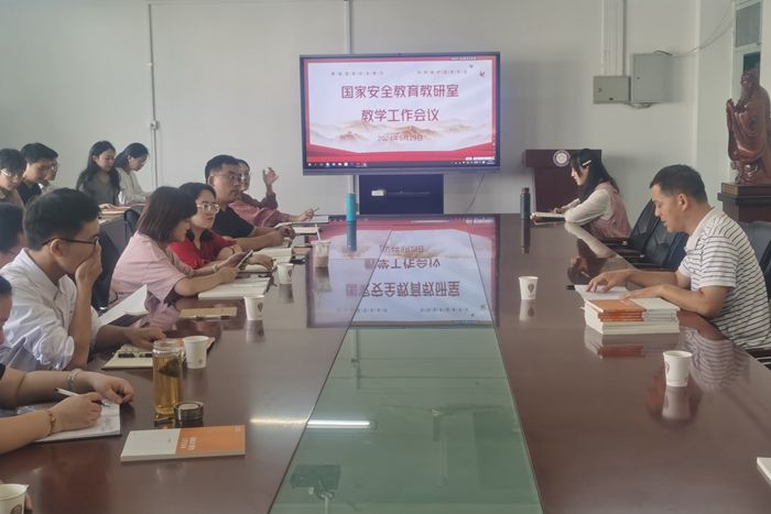 为贯彻落实上级有关精神和要求,统筹布置好国家安全教育课程教学,交流提升新进教师教学素质能力,9月29日下午,国家安全教育教研室在笃行楼409会议室召开学期教学工作会议。教研室全体教师参加会议,会议由教研室副主任张程主持。