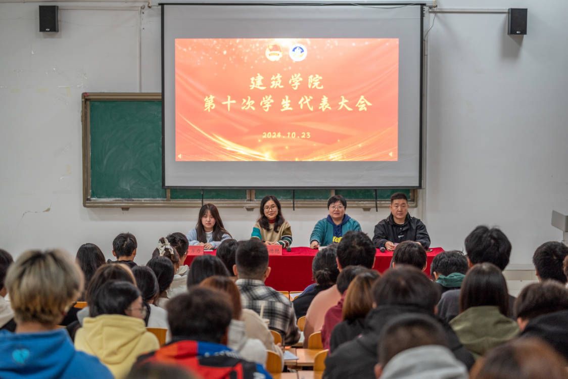10月23日,建筑学院第十次学生代表大会在敏行楼C102报告厅顺利召开。建筑学院党委副书记谢宜勤出席大会并致辞。学院有关教师、大会主席团成员和学生代表参加大会,会议由学生会指导老师武辉主持。