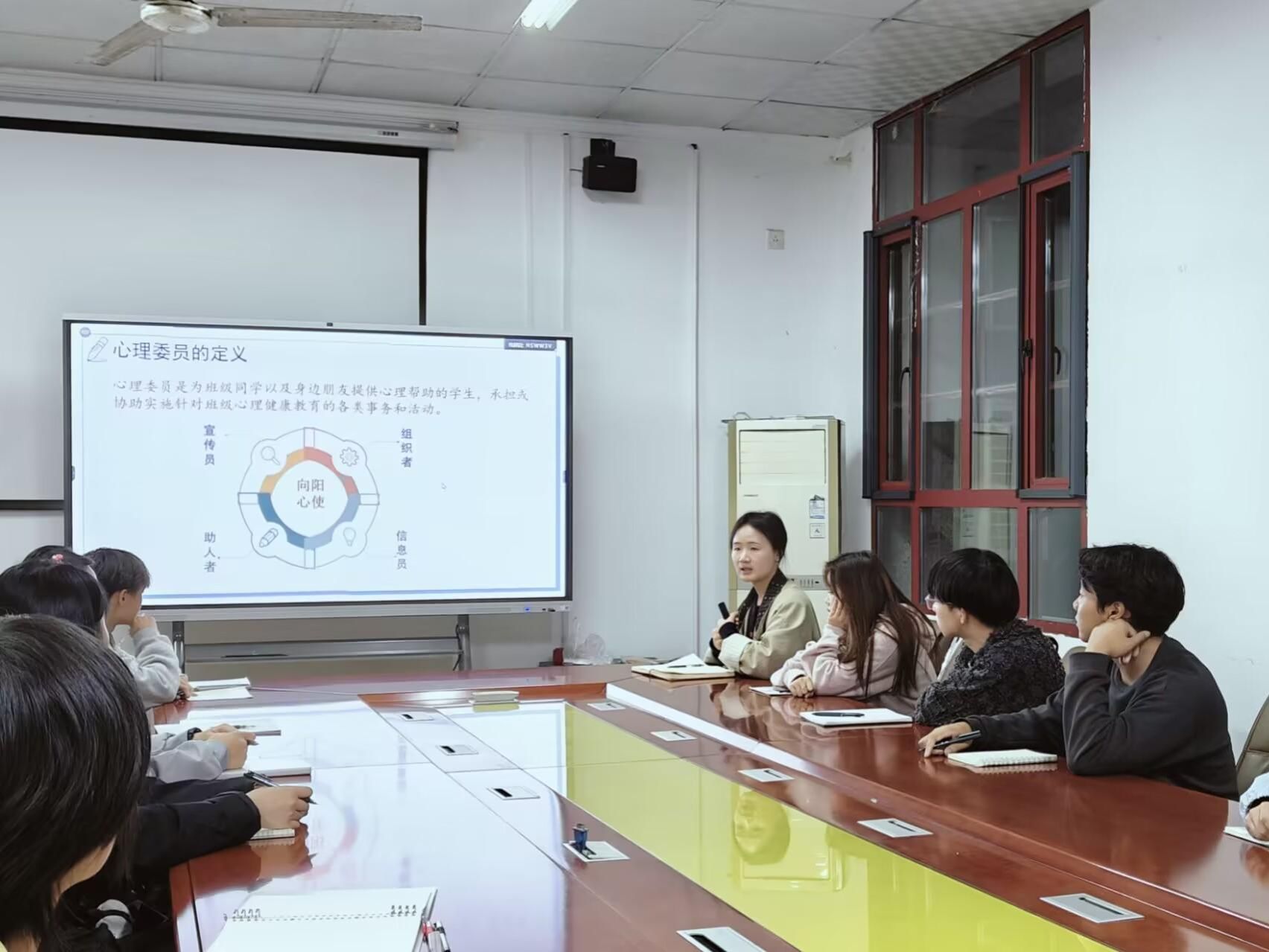 王永芳对心理委员的职责、工作内容等方面进行了详细的讲解,明确心理委员是班级心理知识的宣传员,是心理健康活动的组织者,更是帮助同学走出情绪阴霾、传播积极能量的助人者。心理委员有四大独特优势,一是心理委员作为班级同学被接纳程度高;二是生活在学生之中,能及时、真实地了解学生;三是会接受学校组织的专业培训,同理心、共情力得到很好的提升;四是更能了解与理解同学的心理困惑与心理感受,心理委员要用好自身优势,发挥自己的特长,扎实做好班级心理工作。