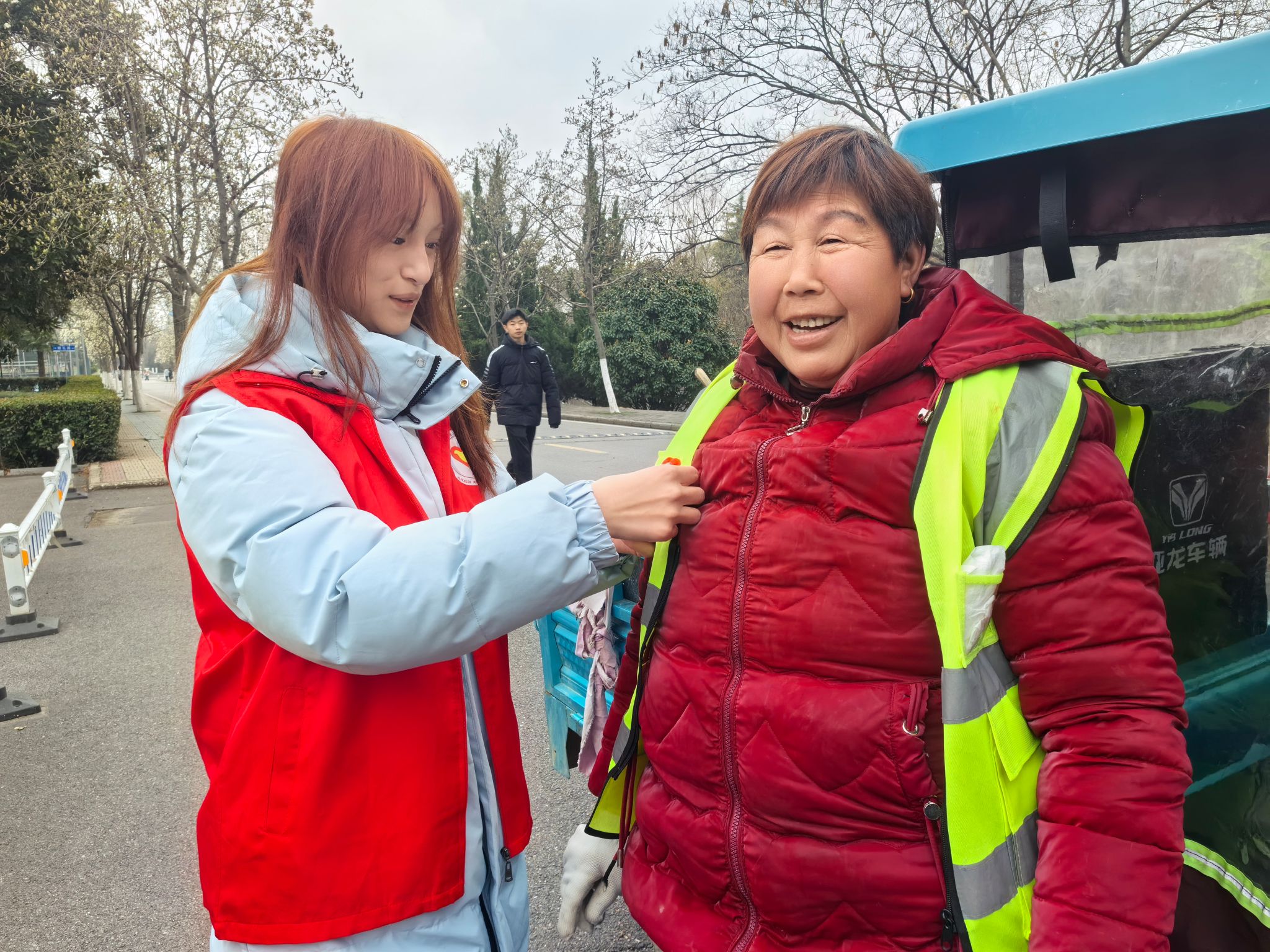 校青年志愿者协会的同学们精心准备了手工制作的小红花,他们带着满满的敬意,找到了校园内的保安叔叔、环卫工人、宿管阿姨,将这些小红花一一递到他们手中,向他们表达了深深的感激与敬意。“谢谢你们,是你们的辛苦付出,才有了我们舒适、整洁的校园环境。”在这一刻,来自学生的感谢让他们感受到了温暖与尊重。