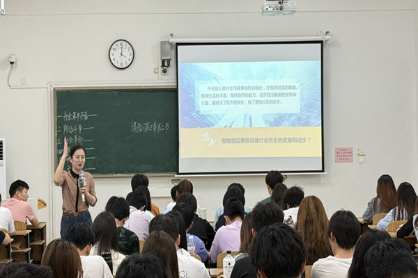 赵仁青紧扣社会历史发展动力这一主题,以深厚的学术积淀为支撑,深入剖析了社会基本矛盾的基础性和根本性地位。在讲解过程中,她结合世情与社情,通过鲜活的案例和深入浅出的理论阐释,让同学们立体地感受到社会历史发展动力的系统性和多样性,深刻认识到这些动力因素在推动人类社会不断向前发展中的不同作用。赵仁青富有感染力的教学风格、旁征博引的知识储备以及与同学们积极互动的教学方式,营造出了热烈的课堂氛围,赢得了现场师生的阵阵掌声,让同学们沉浸在一场知识与思想交融的思政盛宴中。