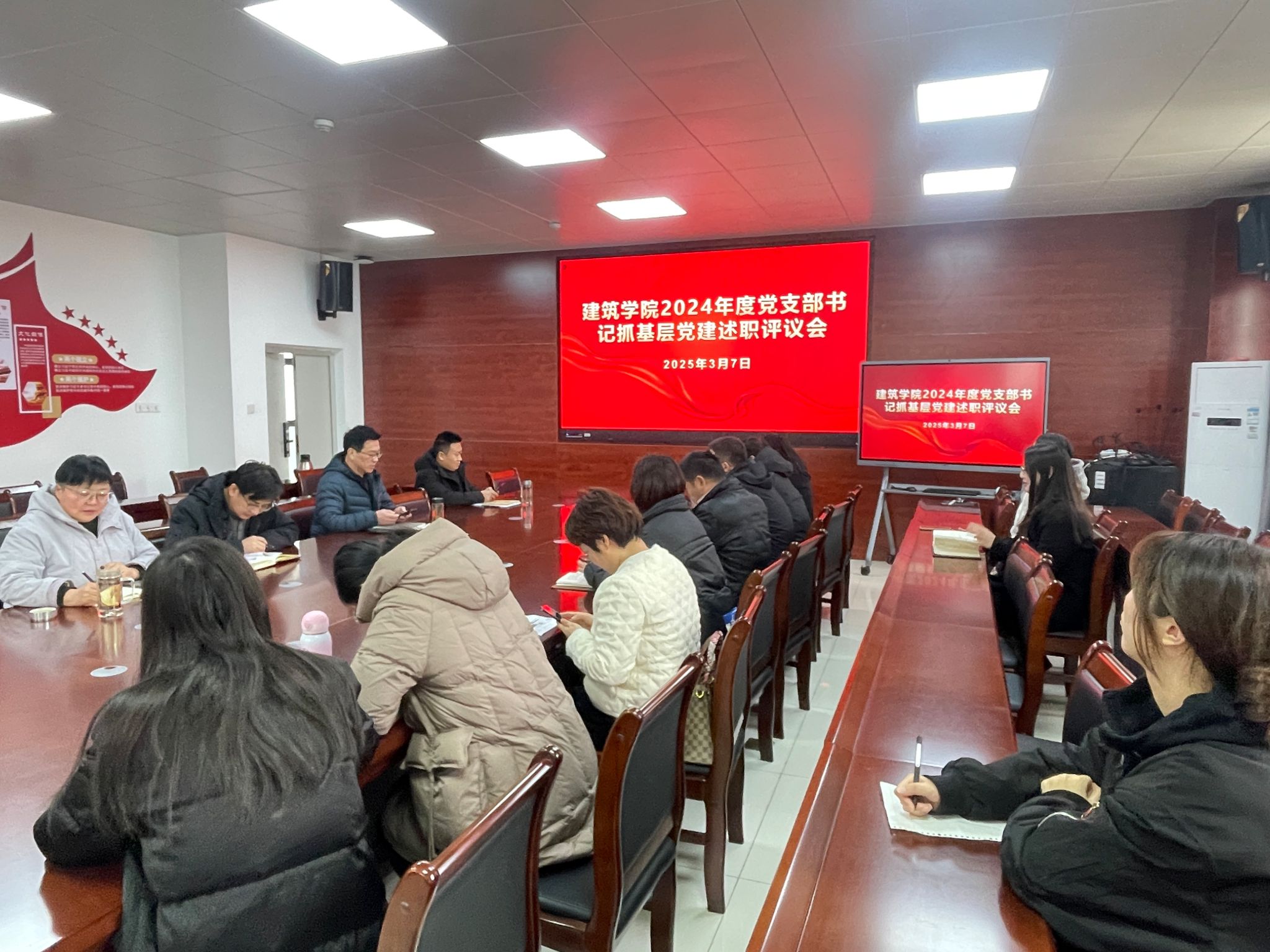 为全面落实学校党委抓基层党建工作述职评议考核要求,扎实推进基层党支部建设,根据《中共爱体育平台委员会关于开展2024年度基层党组织书记抓党建述职评议考核工作的通知》文件精神要求,3月7日下午,建筑学院在龙湖校区尚行楼A301会议室开展2024年度党支部书记抓基层党建述职评议考核,学院党委委员、党支部书记、党支部委员和师生代表参加会议,会议由党委书记傅友福主持。