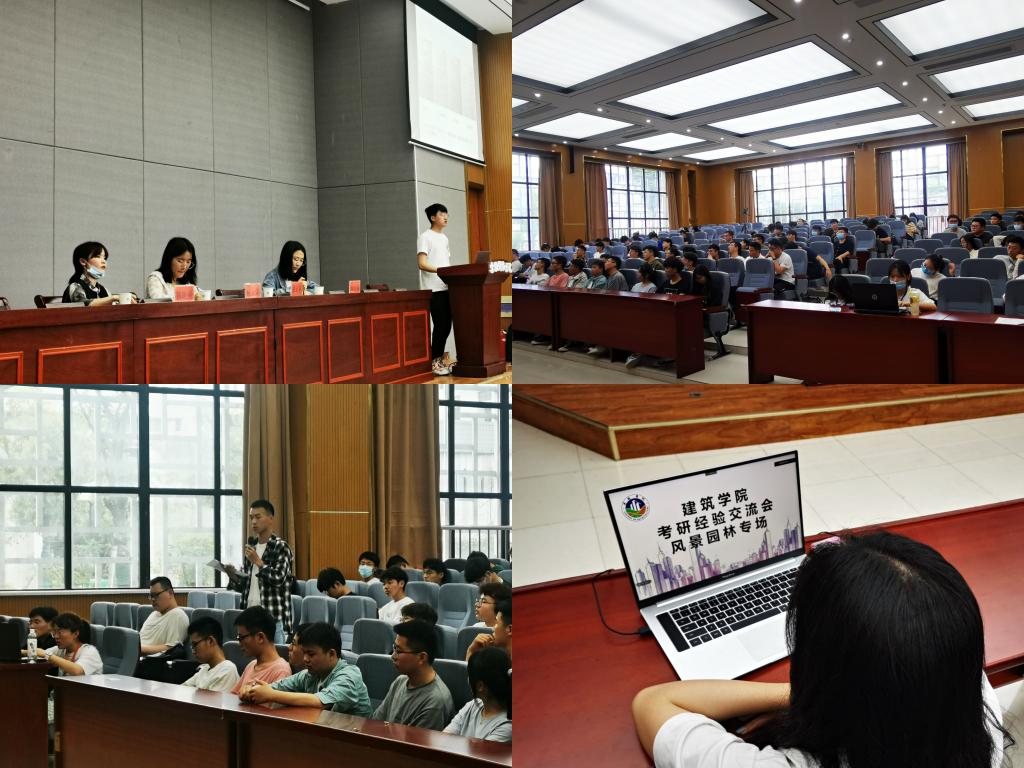5月29日至30日,建筑学院通过线上和线下两种方式,对2018级风景园林、2018级土木工程、2017级建筑学和2017级城乡规划分专业开展考研经验交流会,会议邀请考取中国矿业大学、南京林业大学、浙江农林大学、合肥工业大学、东北林业大学等高校共计12名2021届优秀党员代表、团员代表向同学们进行了考研经验分享和在线答疑,建筑学院辅导员以及来自不同年级不同专业916人次学生参会。
