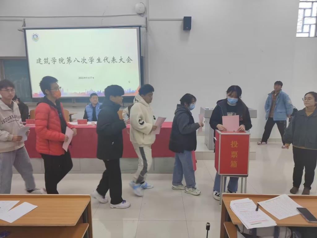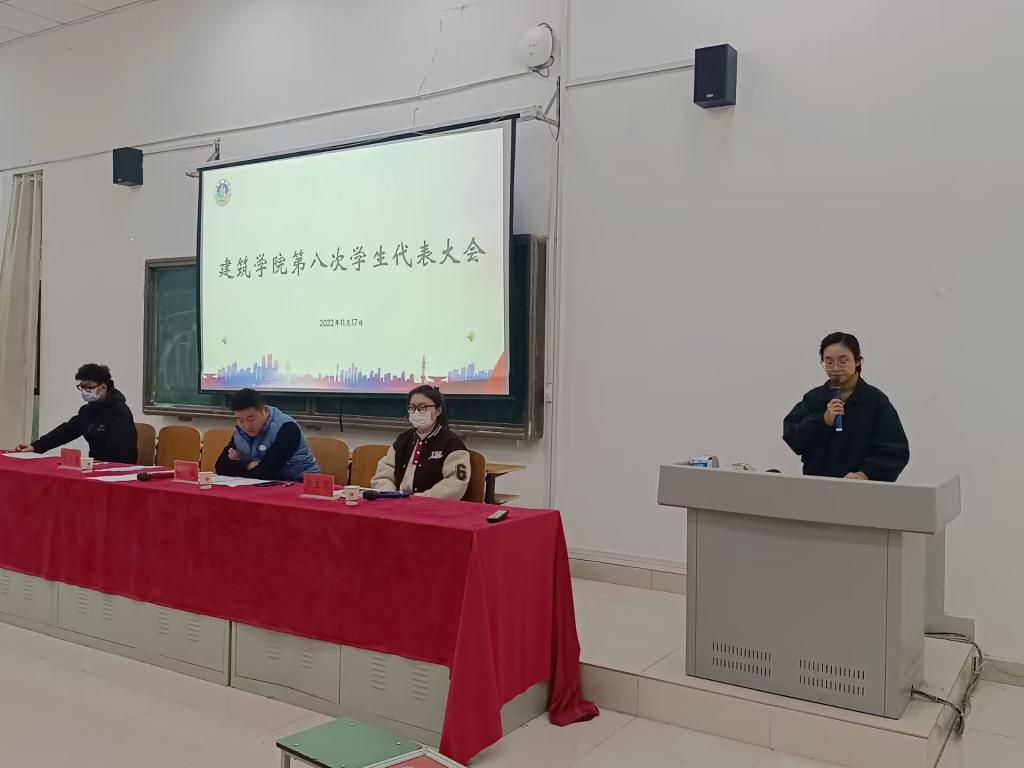 大会在庄严的国歌声中拉开序幕。首先由建筑学院第七届学生会执行主席孙玉慧做工作报告。报告阐述了学生会各部门职责,回顾了院学生组织过去一年里的各项工作情况,并且指出了学生组织当前面临的新形势新挑战,同时也祝愿新一届学生组织工作越来越好。随后,大会表决通过了《建筑学院第八届学生委员会委员选举办法(草案)》和《建筑学院第八次学生代表大会总监票人、监票人建议名单(草案)》,选举产生了出席爱体育平台第十五次学生代表大会正式代表、建筑学院第八届学生会主席团成员、建筑学院第八届学生委员会委员。
