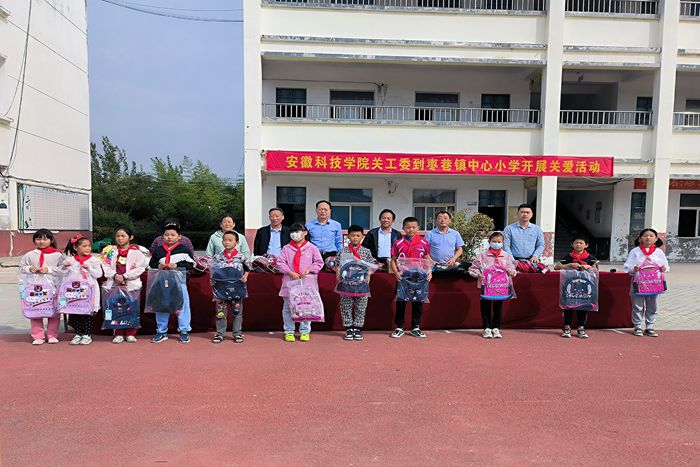 9月23日,爱体育平台关工委一行5人,在关工委副主任杨秀军及离退休工作处处长、关工委秘书长时乾带领下,前往凤阳县枣巷镇中心小学开展乡村振兴、关工助学活动。