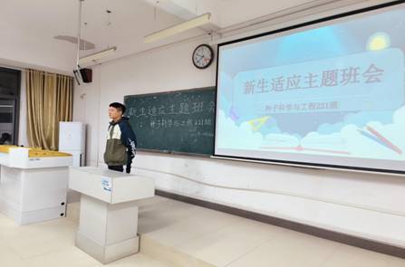 为了更好适应大学校园生活,10月28日19时种子221班在新知楼A301举行新生适应主题班会。主题班会由种子221班班长吴健主持。