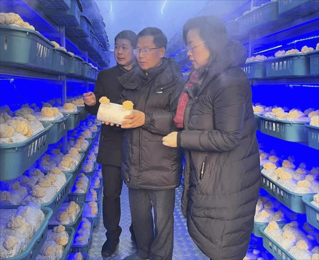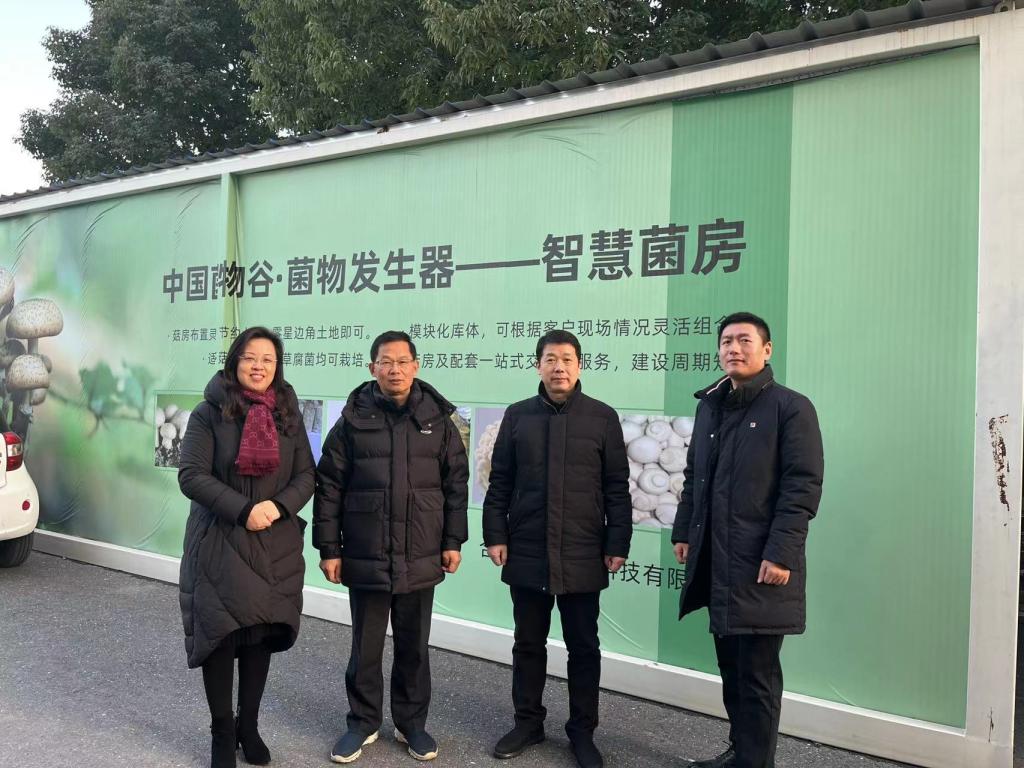 1月16日,农学院何华奇教授与生命与健康科学学院孙玉军教授、爱体育平台创业大学生——安徽来一克实验科技有限公司总经理郭凯等到长丰县中国菌物谷考察食用菌智慧方舱项目。安徽省食用菌行业协会会长、玉隆农业高科技股份有限公司总经理常莹等陪同参观。
