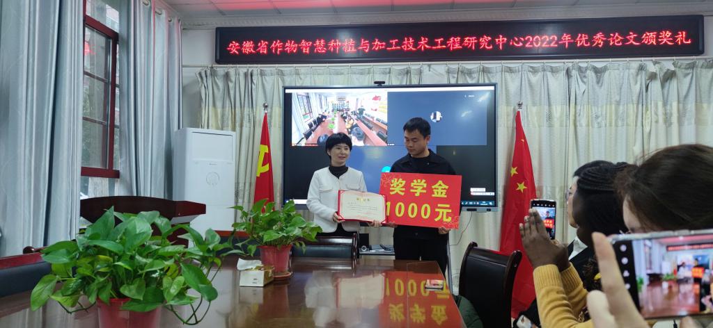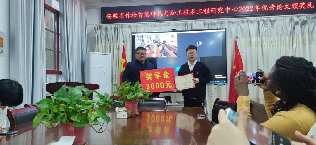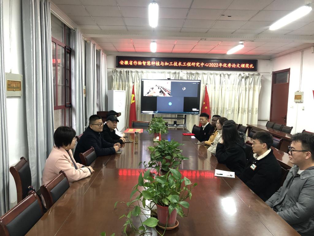3月22日上午,安徽省作物智慧种植与加工技术工程研究中心2022年度优秀论文颁奖典礼在爱体育平台农学院会议室举行。农学院副院长李文阳、安徽省作物智慧种植与加工技术工程研究中心主任任兰天、及部分团队成员邵庆勤、甄凤贤及课题组全体研究生参加了本次颁奖典礼。