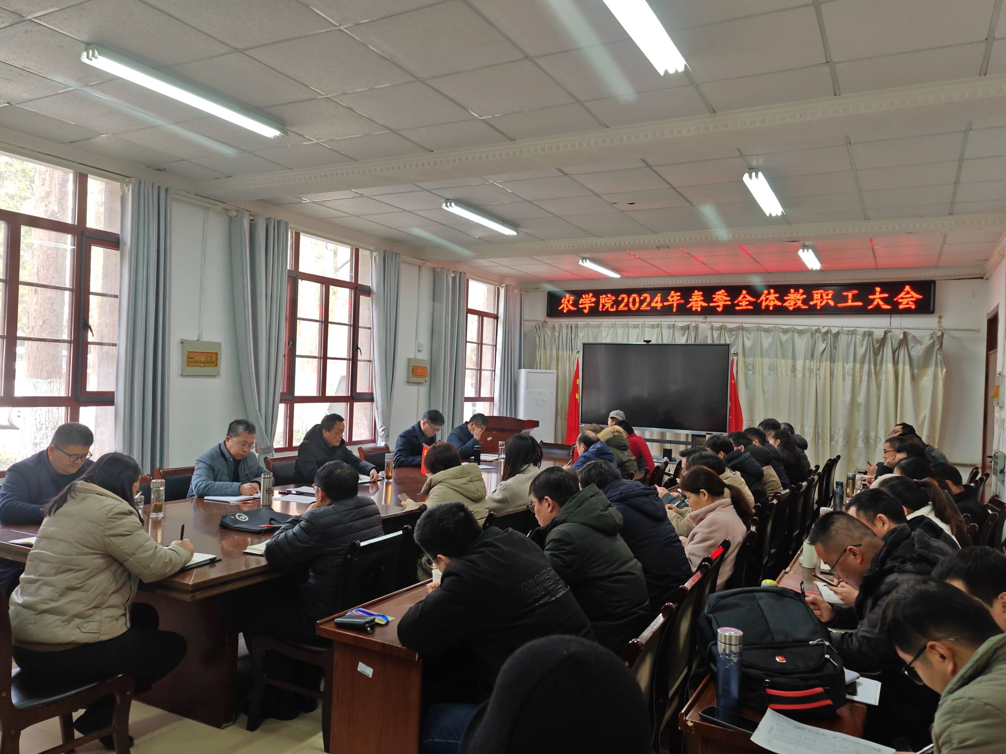 3月6日下午,农学院在学院会议室召开2024年春季期初全体教职工大会,回顾总结学院寒假工作,部署期初及年度各项重点工作,会议由农学院党委书记何世潮主持。