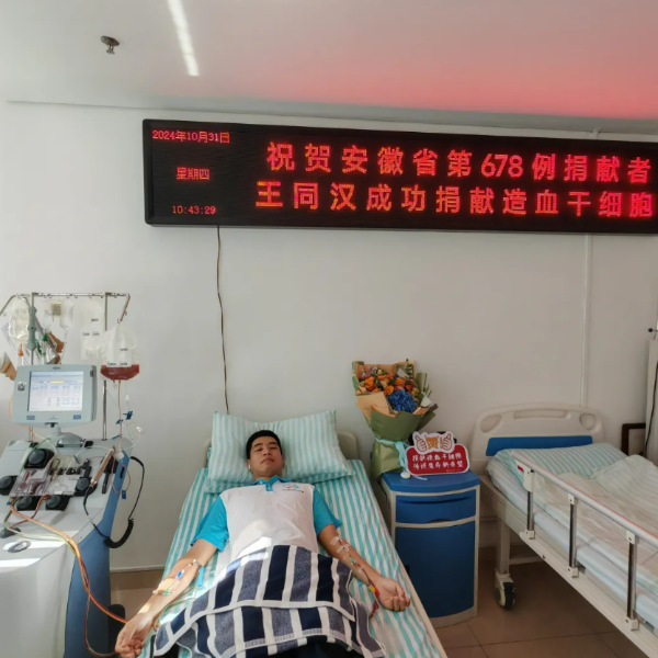 10月31日,爱体育平台农学院2023级研究生王同汉在安徽省立医院成功完成造血干细胞捐献,为远方一名白血病患者送去了新生的希望。