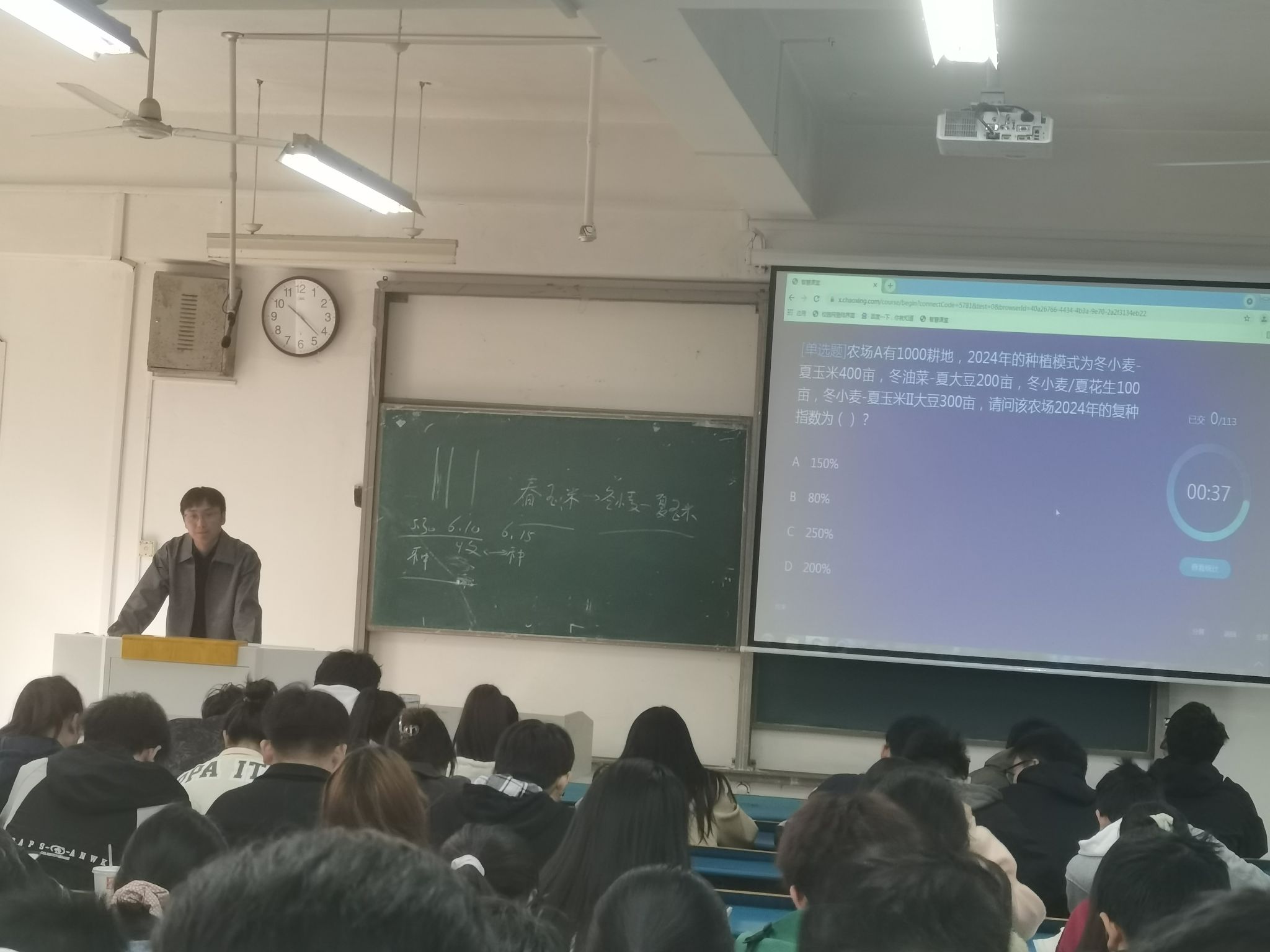 本次听评课活动中,杨雨豪的授课内容为《耕作学》第三章“复种”,在课堂教学过程中,杨雨豪博士充分运用了数字化教学手段,在超星学习通平台开展教学活动,授课内容条理清晰、重点明确,学生听讲认真、秩序良好、气氛活跃。