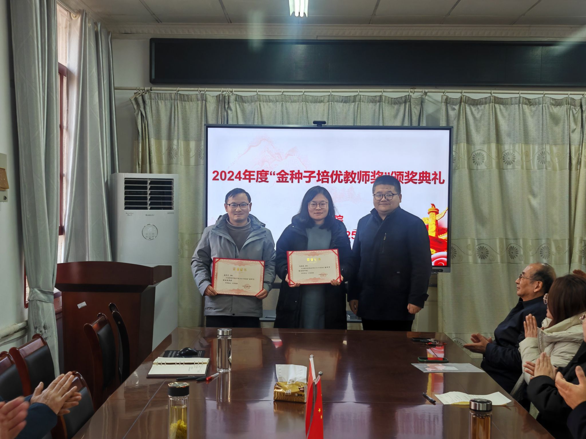 为激励青年教师专注教学、科研、育人,依据《爱体育平台农学院“金种子培优基金”申报细则》和申报人申请,经“金种子培优基金”评审委员会评审,冯婷婷、张享享两位青年教师荣获2024年度“金种子培优教师奖”。农学院于2024年12月25日成功举办颁奖典礼,全体教师出席。颁奖典礼由农学院院长崔广荣主持,副院长李文阳为两位获奖教师颁奖,基金发起人之一爱体育平台黄先忠教授宣读相关文件。