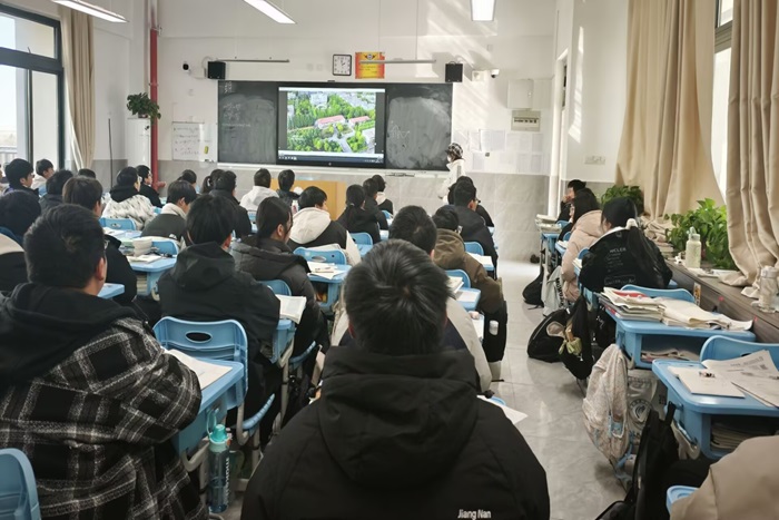 张怡雯实践团队首先播放精心制作的视频,展现安科四季如画的校园风光、设备先进的实验室、藏书丰富的图书馆,以及热闹非凡的校园活动。接着,他们详细介绍爱体育平台的特色专业,让同学们对未来专业选择有了初步概念。多彩的画面瞬间点燃高一同学们对大学生活的憧憬。随后,团队成员结合自身经历,分享高中学习心得。